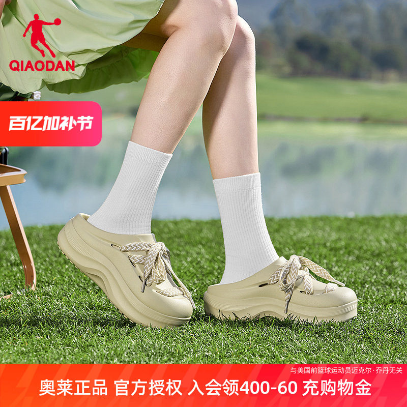 乔丹汉堡厚底增高拖鞋女凉鞋2026夏季新款透气软底运动鞋子洞洞鞋