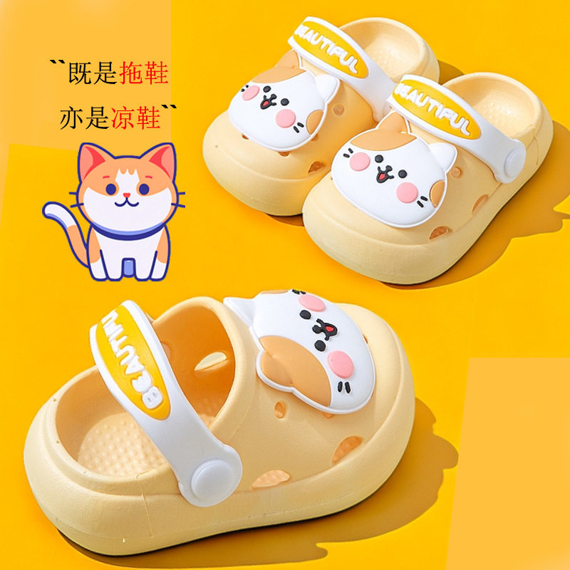 柔软防滑卡通小猫洞洞鞋男童女童凉拖鞋夏季包头宝宝儿童拖鞋小孩