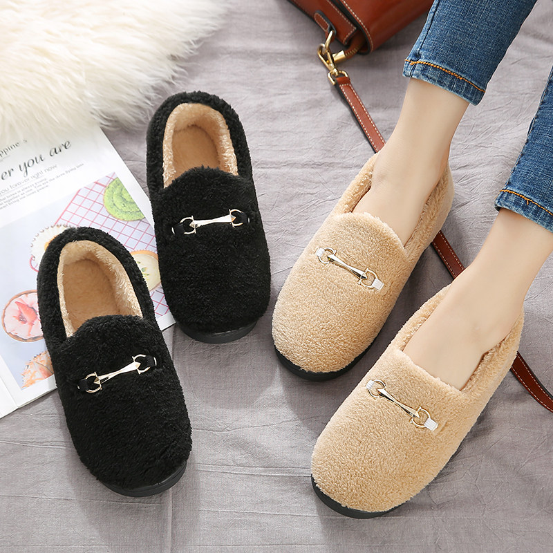 冬季男女情侣款加绒加厚包跟棉拖鞋居家外穿防滑厚底保暖毛毛棉鞋