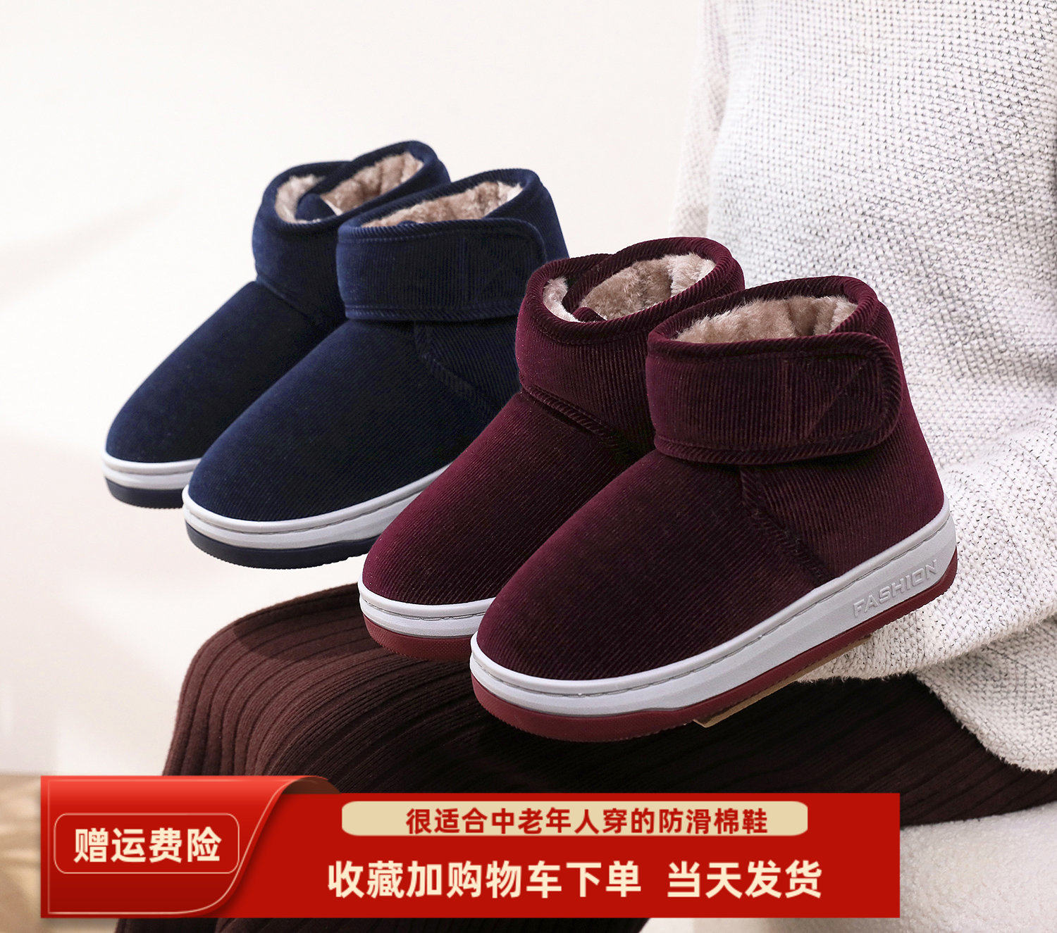 大开口毛绒棉鞋宽松鞋脚肿中老人棉鞋厚底防滑穿脱方便男女棉拖鞋
