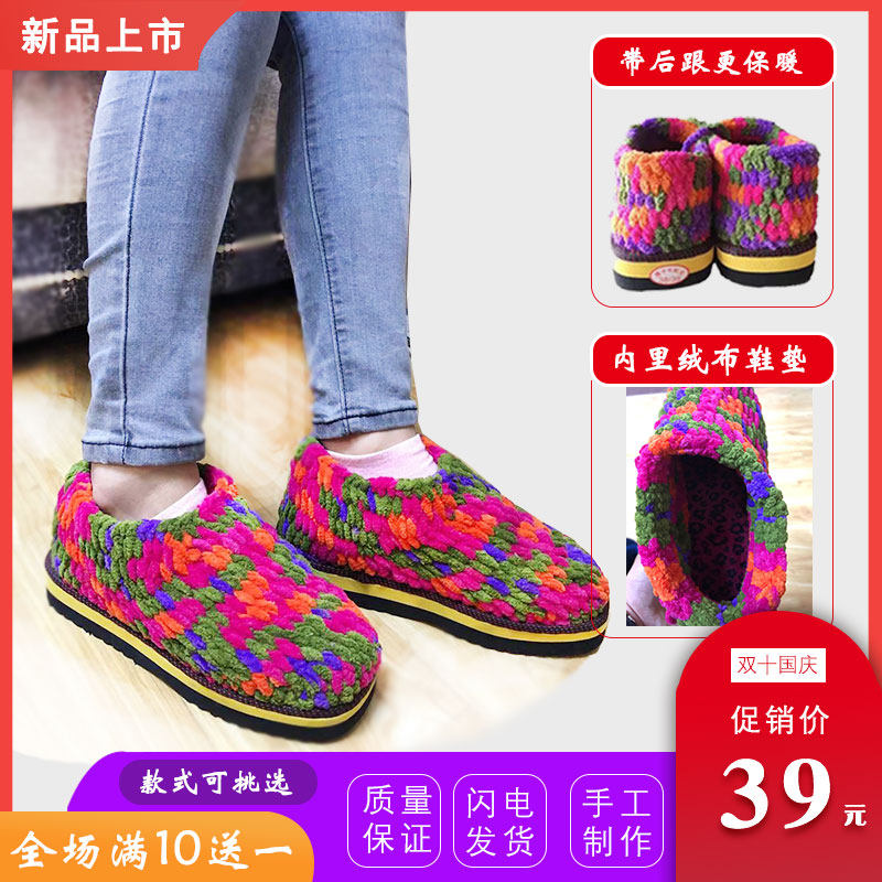 妈妈钩织手工毛线鞋加厚保暖包跟拖鞋防滑棉鞋男女士秋冬居家成品