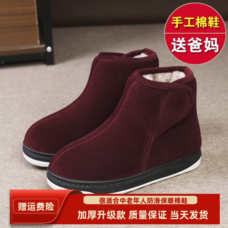 冬季加绒加厚防滑老人包跟棉拖鞋居家外穿厚底男女款保暖高帮棉鞋
