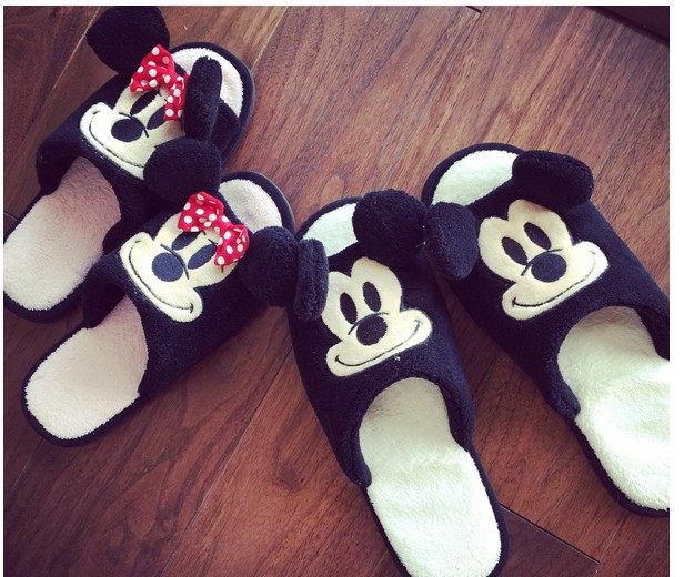 迪士尼米奇米妮卡通毛绒家居露趾拖鞋 情侣拖鞋 居家鞋 毛绒拖鞋