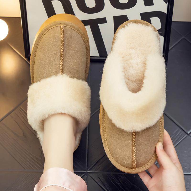 秋冬季皮毛一体居家用毛绒保暖厚底居家室内防滑女士羊毛毛口拖鞋