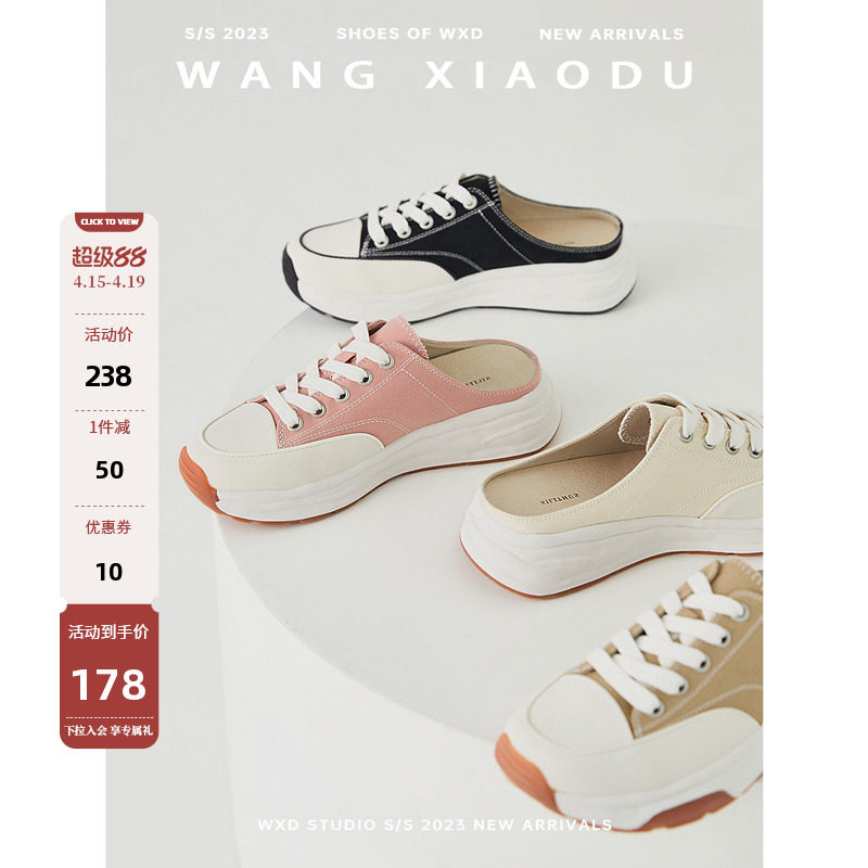 【王小毒】北海道②●4.3cm增高帆布包头半拖鞋休闲厚底小白鞋女