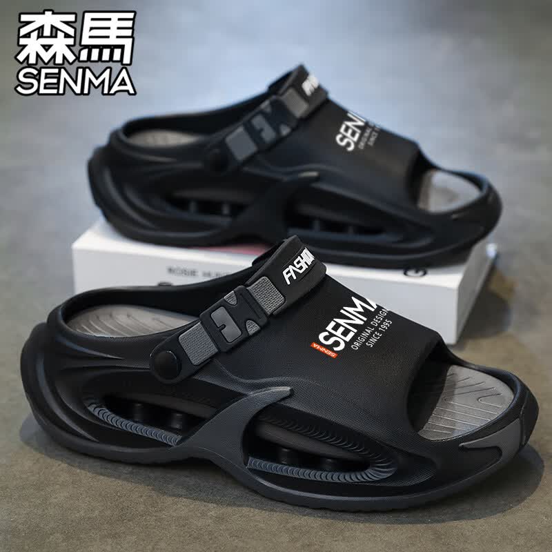 森馬(senma)森马拖鞋男夏季外穿防滑厚底拖男士大码沙滩凉鞋 黑色 40-41