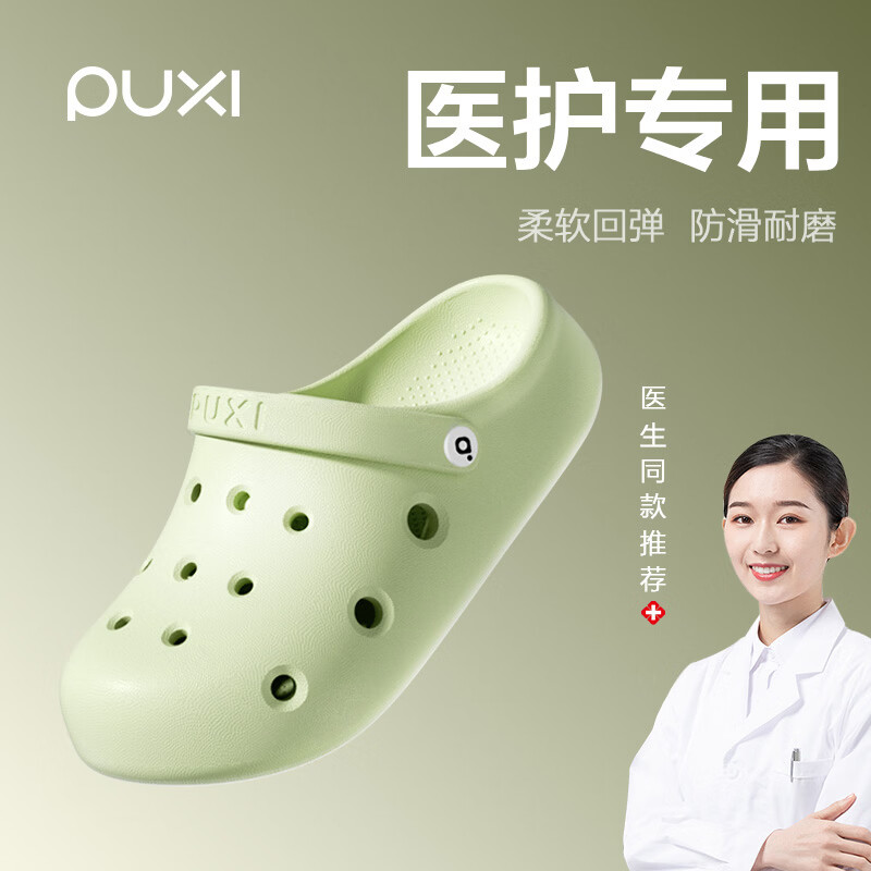朴西医护专用洞洞鞋女手术室防滑软底夏季透气不累脚护士居家包头拖鞋 薄荷绿 37-38