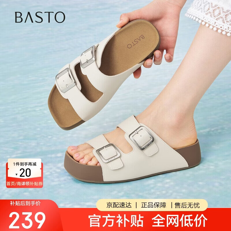 百思图26夏勃肯鞋简约户外休闲女拖鞋T9361BT6 米白色 37