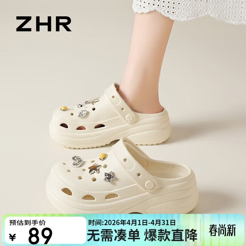 QYCKABY洞洞鞋女夏季2026新款厚底增高户外穿防滑踩屎感沙滩包头凉拖鞋女 米白【文静女孩】 37-38 标准码(内长240MM)