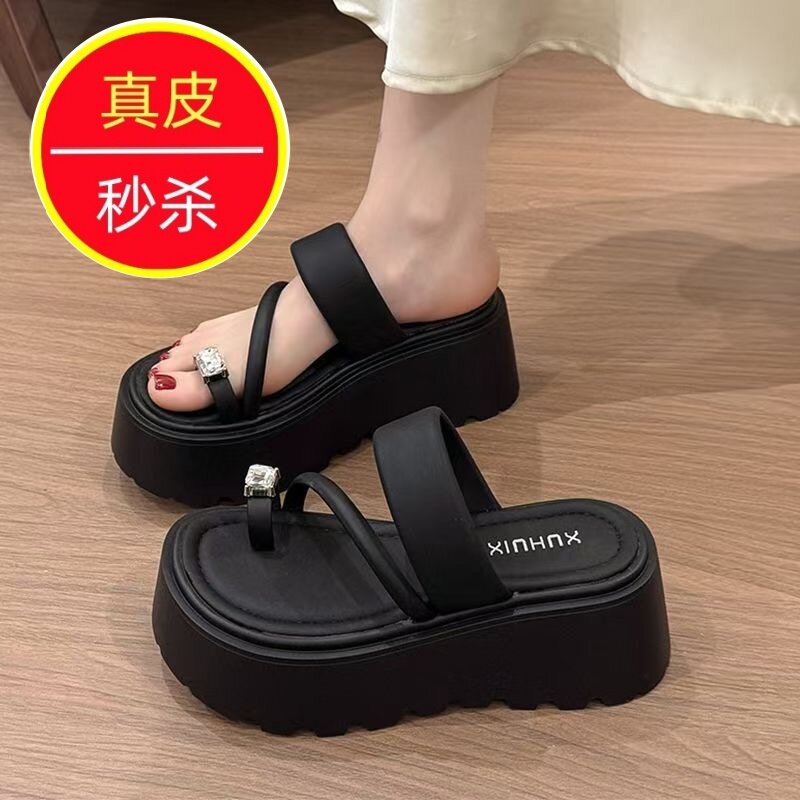 韩版松糕厚底人字拖女2026年夏季新款外穿水钻增高绝美百搭凉拖鞋