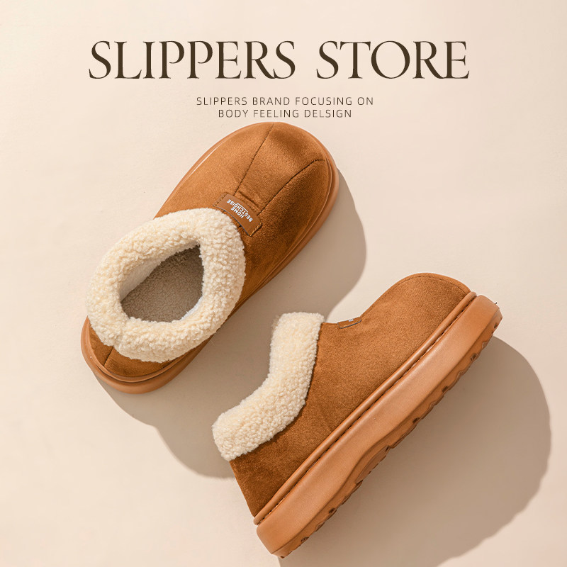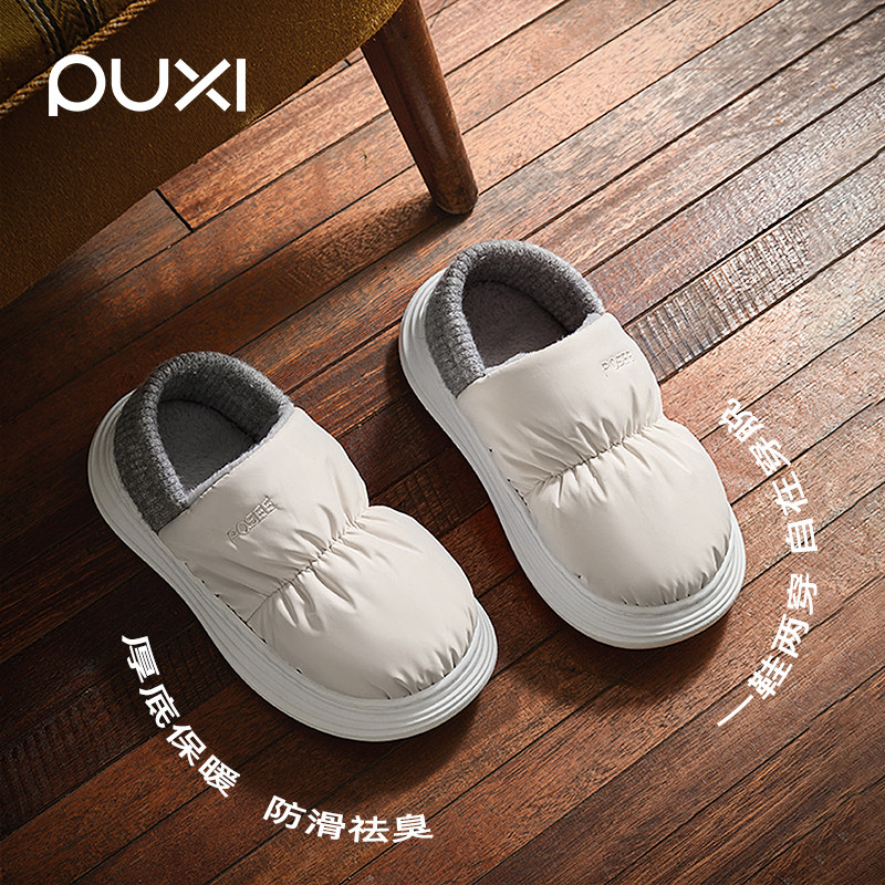 朴西棉拖鞋女冬加绒加厚底保暖防滑室内家居包头情侣棉拖男毛毛鞋