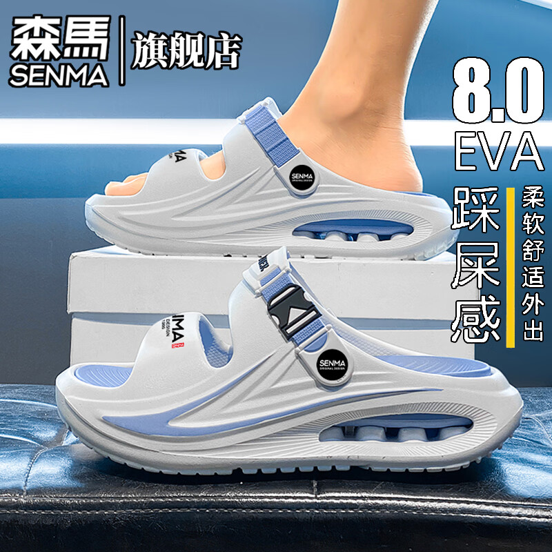 森馬拖鞋男夏季新款外穿防滑耐磨踩屎感一字拖户外休闲海边沙滩凉拖鞋 白蓝 【基础款】 41 (40-41 同码)
