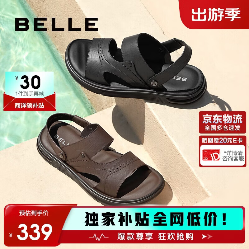 百丽男鞋两穿凉拖鞋夏商场款牛皮休闲沙滩凉鞋8GF01 棕色-哑光 42