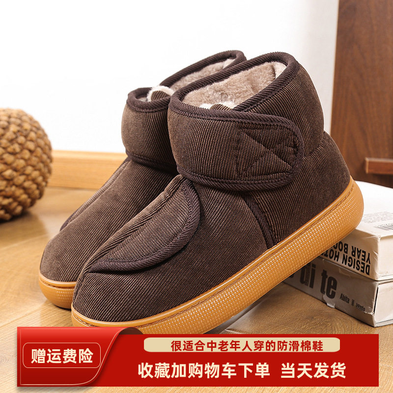 中老年人厚底高帮棉拖鞋男女冬加绒保暖包跟防滑居家妈妈棉鞋外穿