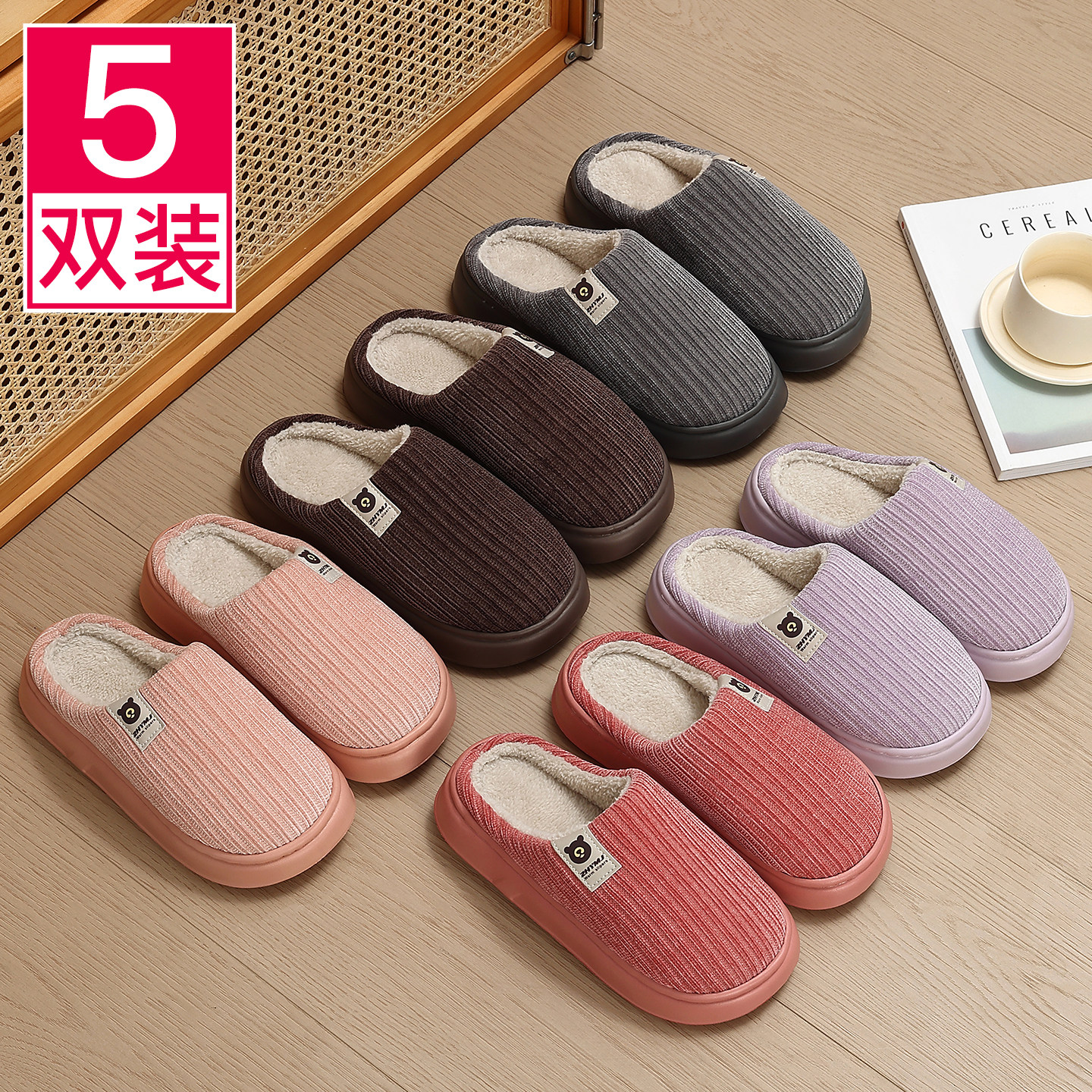 5双棉拖鞋女款秋冬季2025新款情侣室内家居保暖防滑待客棉拖男士