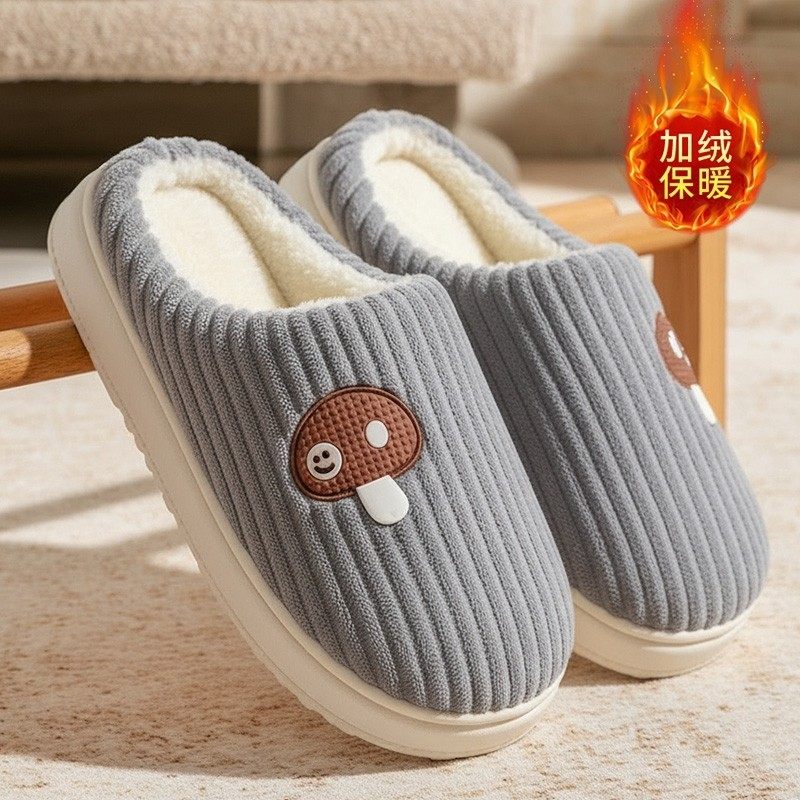 朴西棉拖鞋女士保暖防滑秋冬季居家用室内静音简约软底情侣棉鞋男