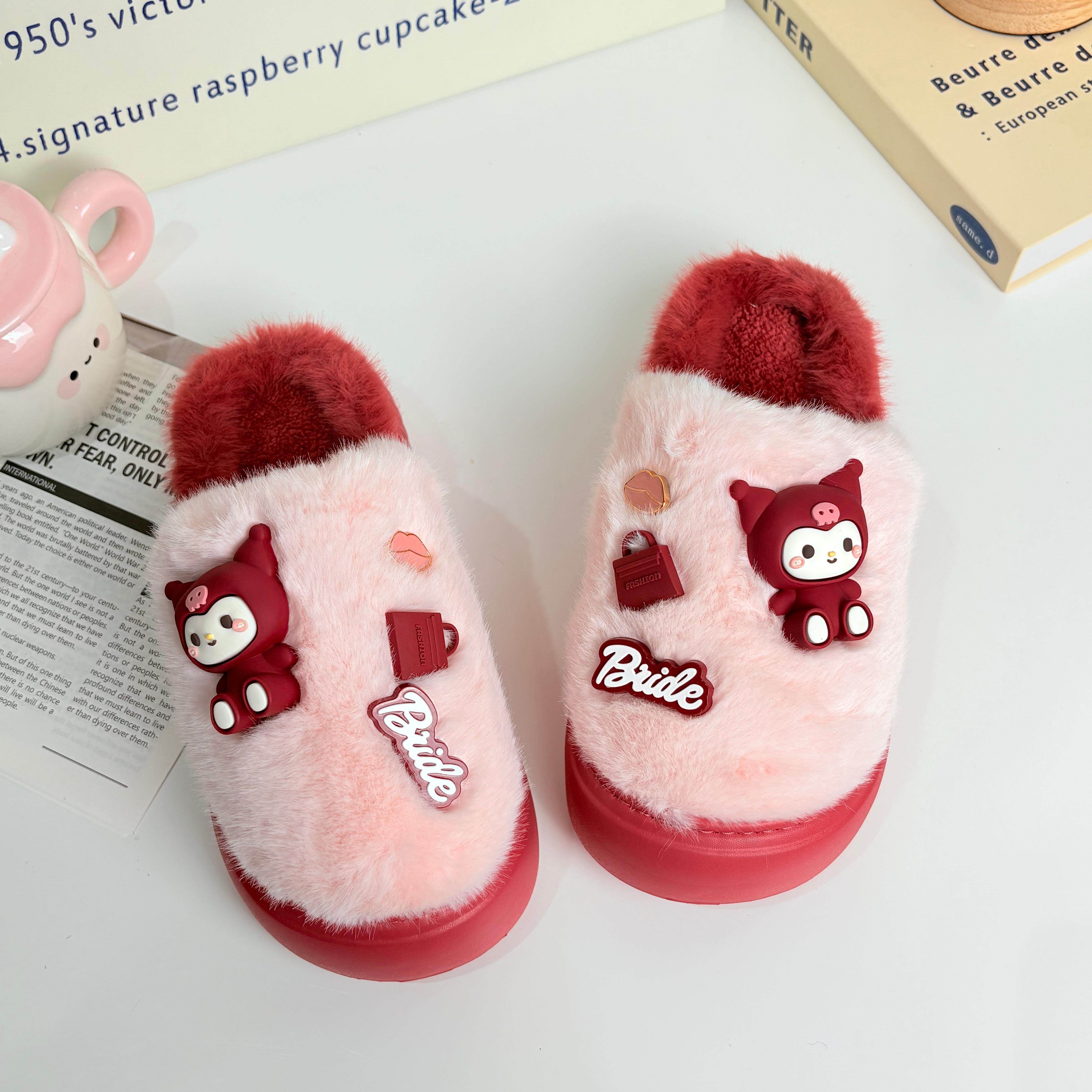 棉拖鞋女冬季室内家居新款卡通防滑毛毛加绒厚底棉拖