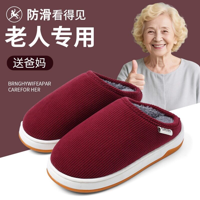 手工棉拖鞋女冬季老人防滑牛筋底2025新款老年人加绒外穿棉鞋冬天