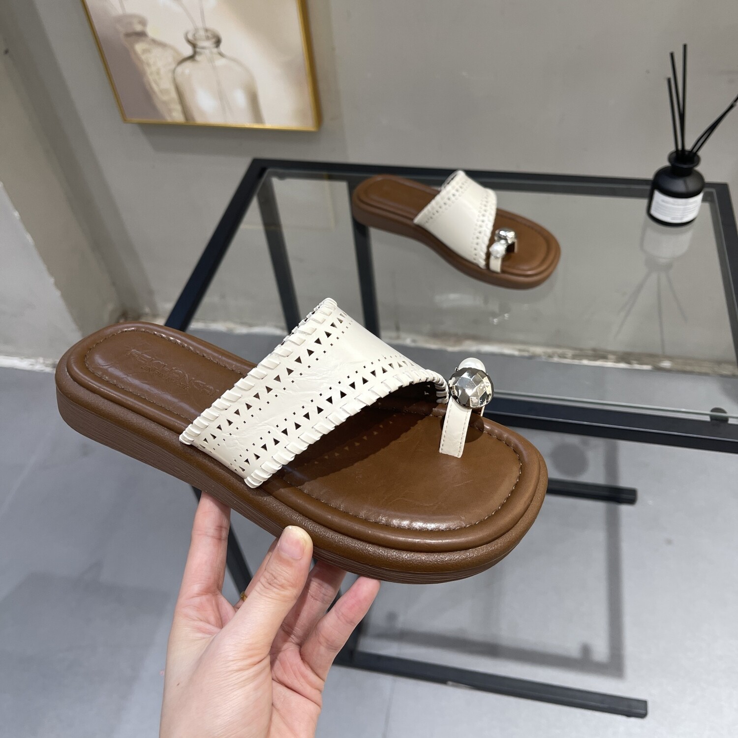 小池在首尔25年夏季新款圆头低跟夹趾人字凉拖鞋舒适平底外穿女鞋