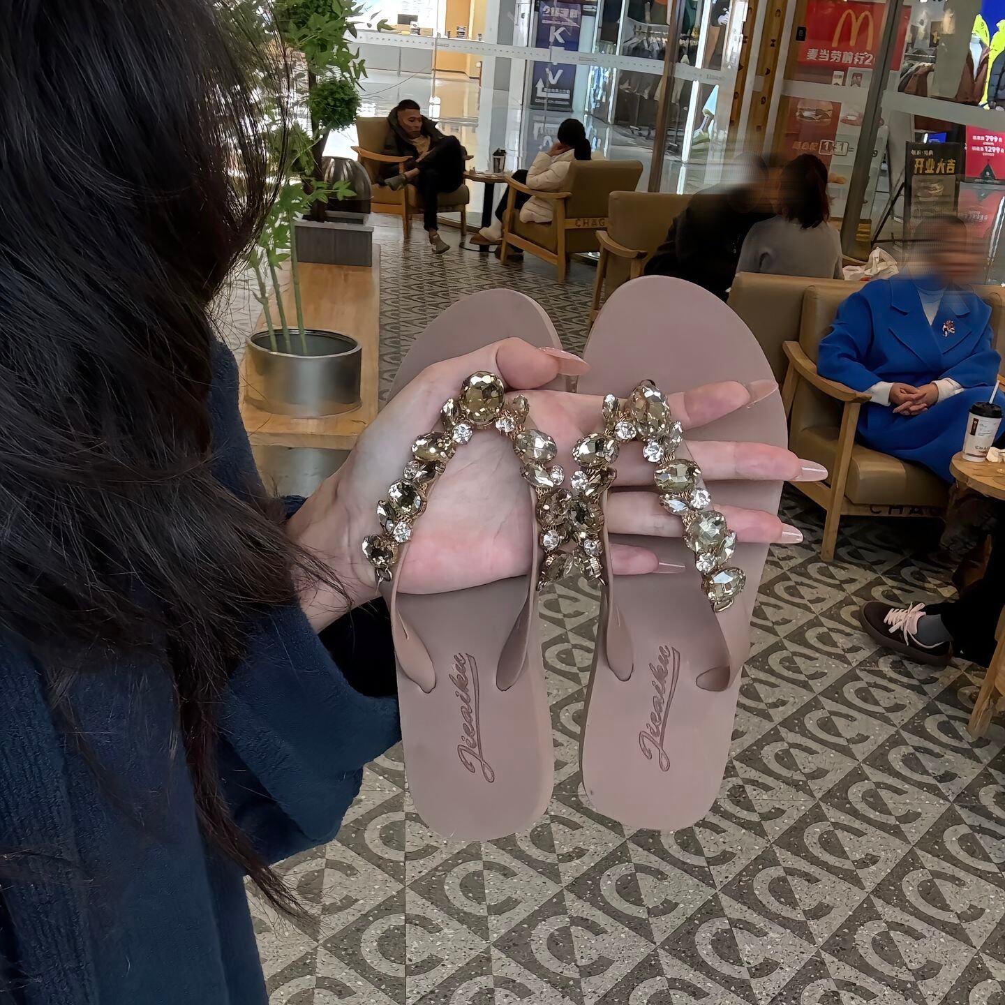 水钻凉拖鞋超火绝美人字拖女外穿高级感2026新款海边沙滩防滑拖鞋