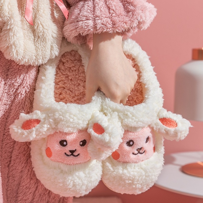 萌化少女心可爱绵羊棉拖鞋女生冬天ins居家用室内防滑一字毛毛鞋
