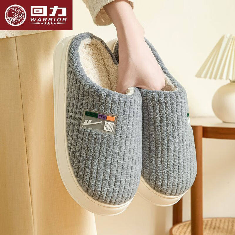 回力保暖棉拖鞋男室内耐穿保暖防滑加绒加厚简约耐脏情侣款男女