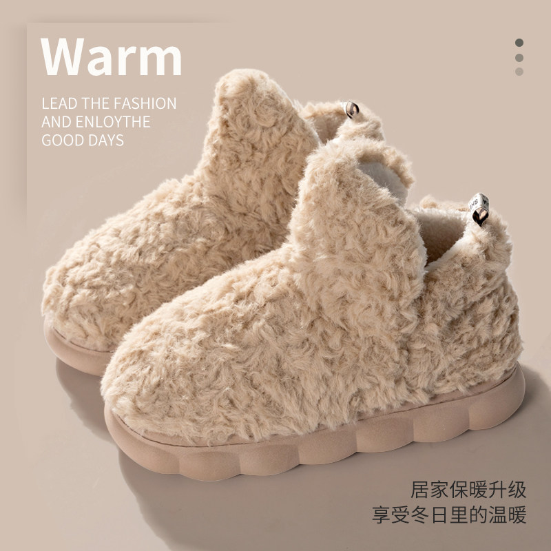 2025新款包跟棉拖鞋女款冬季外穿棉鞋高帮毛口加绒保暖5.0cm厚底