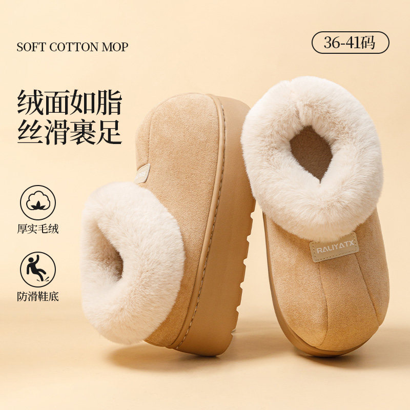 棉鞋女踩屎感厚底高包跟防滑室内家居家用冬季月子棉拖鞋保暖毛绒