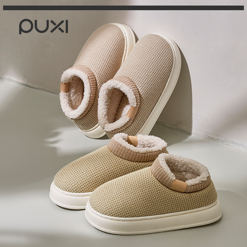 朴西月纱棉鞋女包根针织冬季拖鞋情侣家居室内保暖透气不闷脚厚底