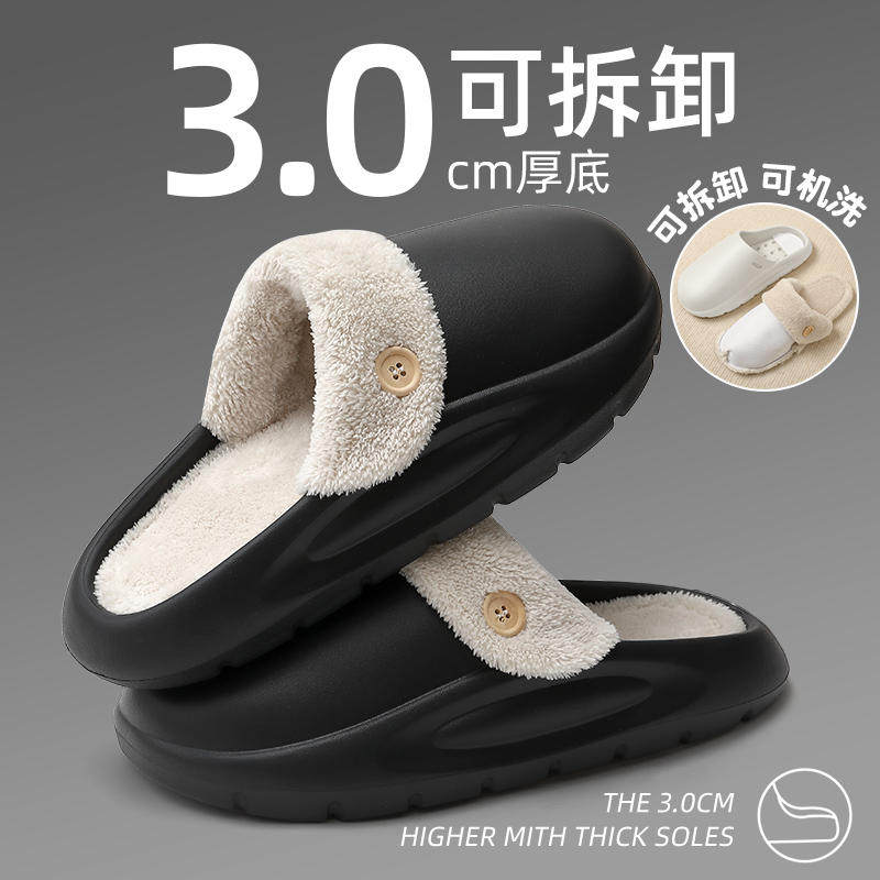 朴西防水棉拖鞋女秋冬季居家室内防滑厚底加绒保暖简约情侣棉鞋男