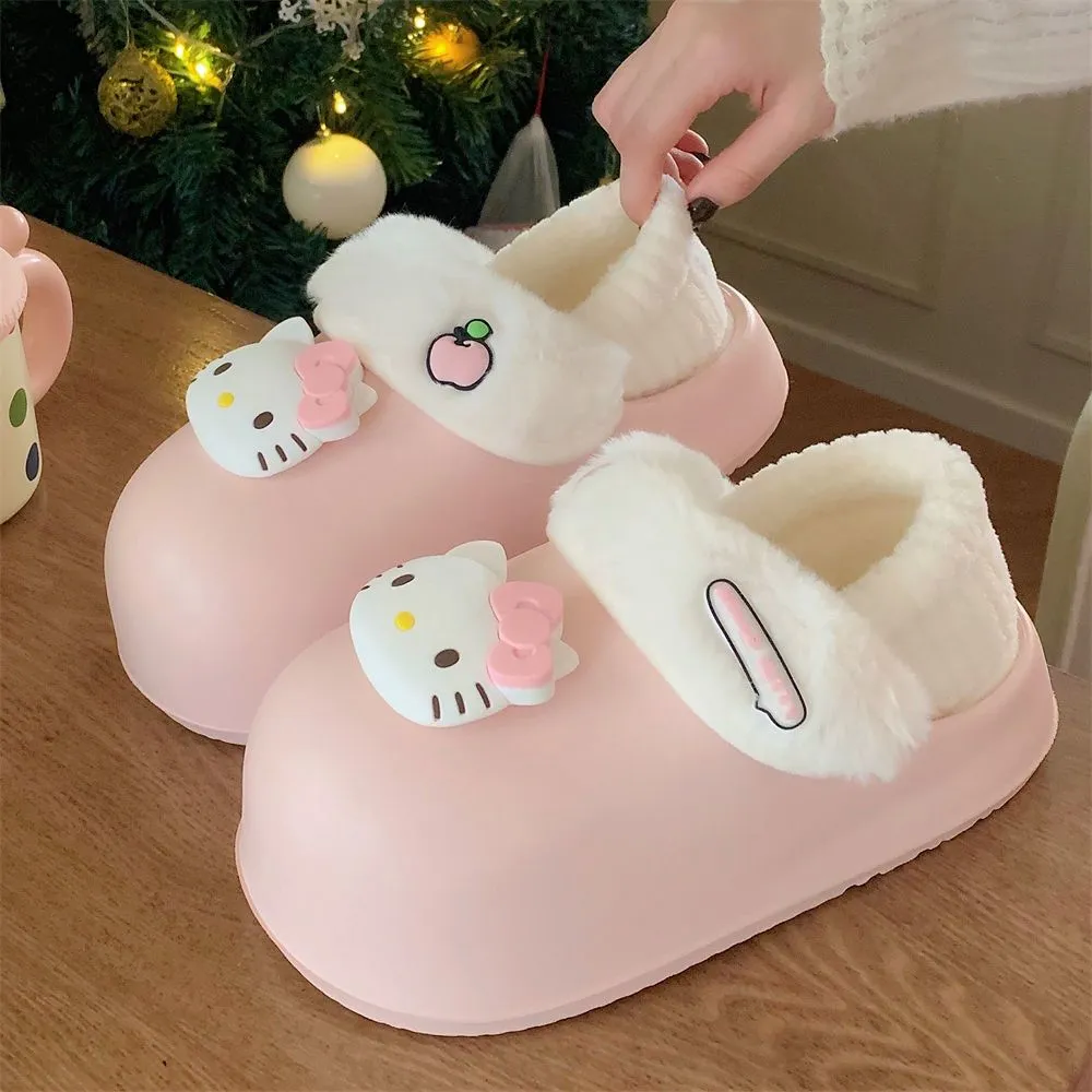 防水棉拖鞋女款2025新款秋冬季室内家居可拆卸凯蒂猫毛绒拖鞋冬天