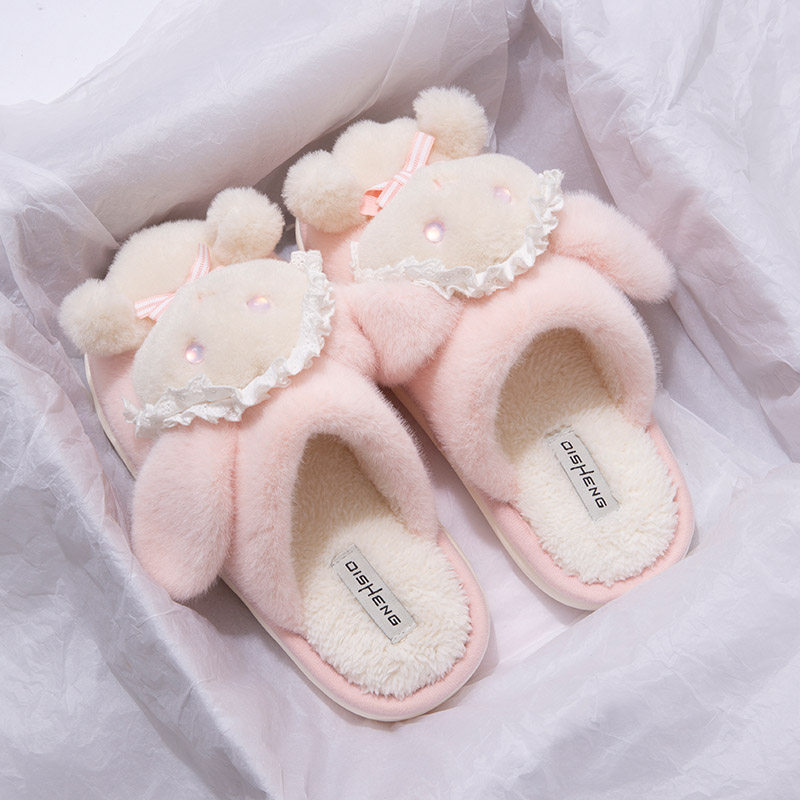 女士冬季少女心室内家居保暖棉拖鞋卡通可爱长耳朵小狗月子软底鞋