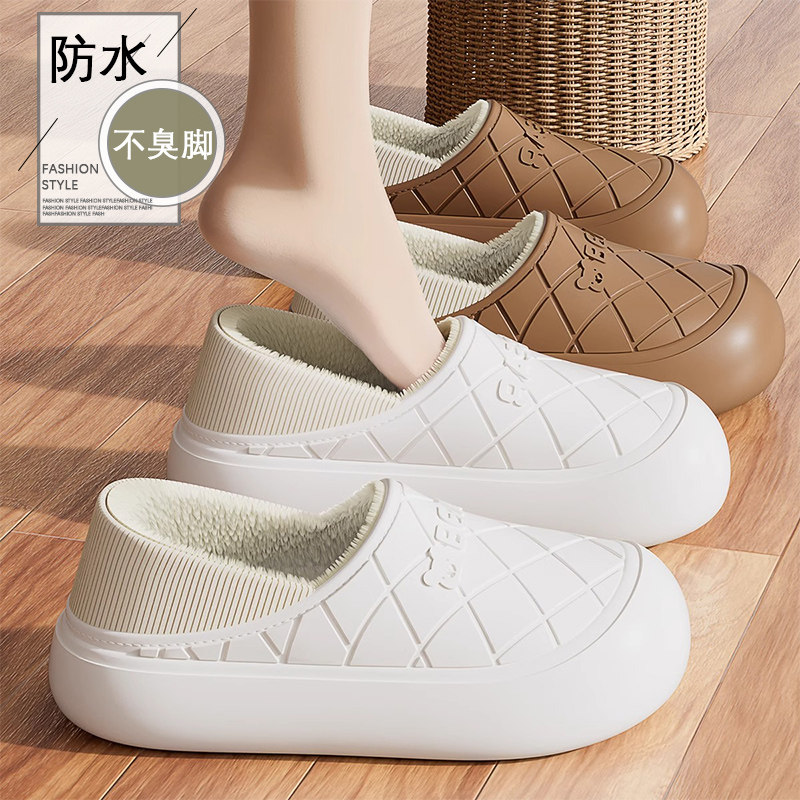 厚底保暖棉拖鞋女款2025新款居家外穿防水外穿增高踩屎感雪地棉鞋
