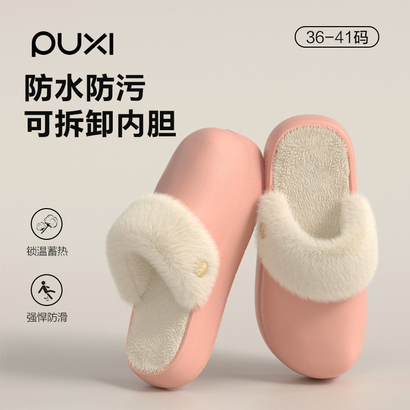 朴西冬季新款防水棉拖鞋女居家防滑保暖静音可拆卸简约情侣棉拖男