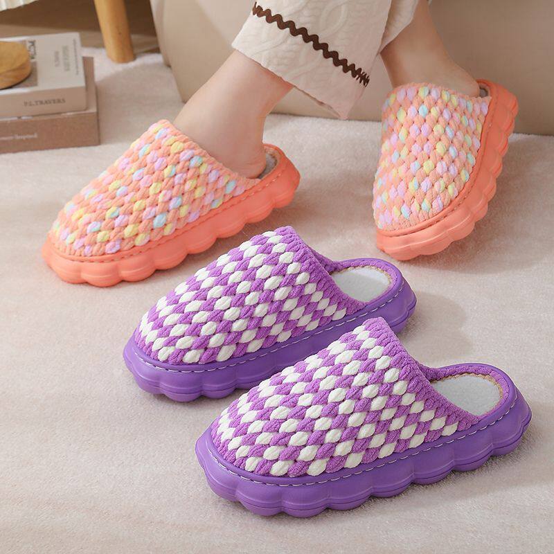 棉拖鞋女新款韩版时尚室内家居防滑秋冬花式微颗粒绒男棉拖情侣鞋