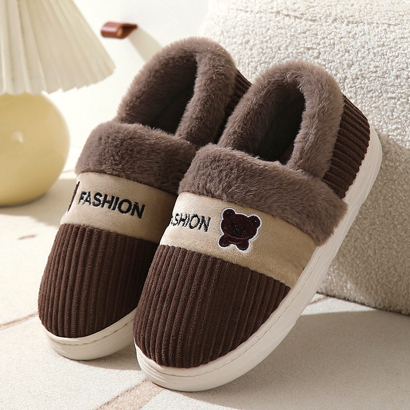 朴西居家静音棉拖鞋女秋冬季加绒保暖室内防滑舒适简约情侣棉拖男