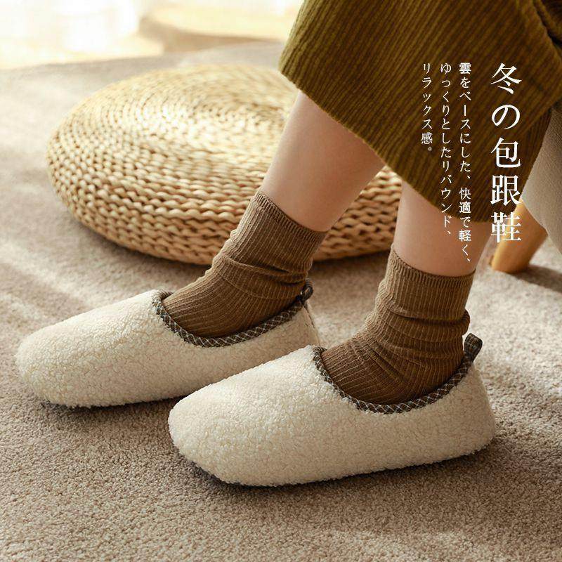 日式冬季绒面保暖家用包跟棉拖鞋女室内防滑无声地板月子鞋厚底