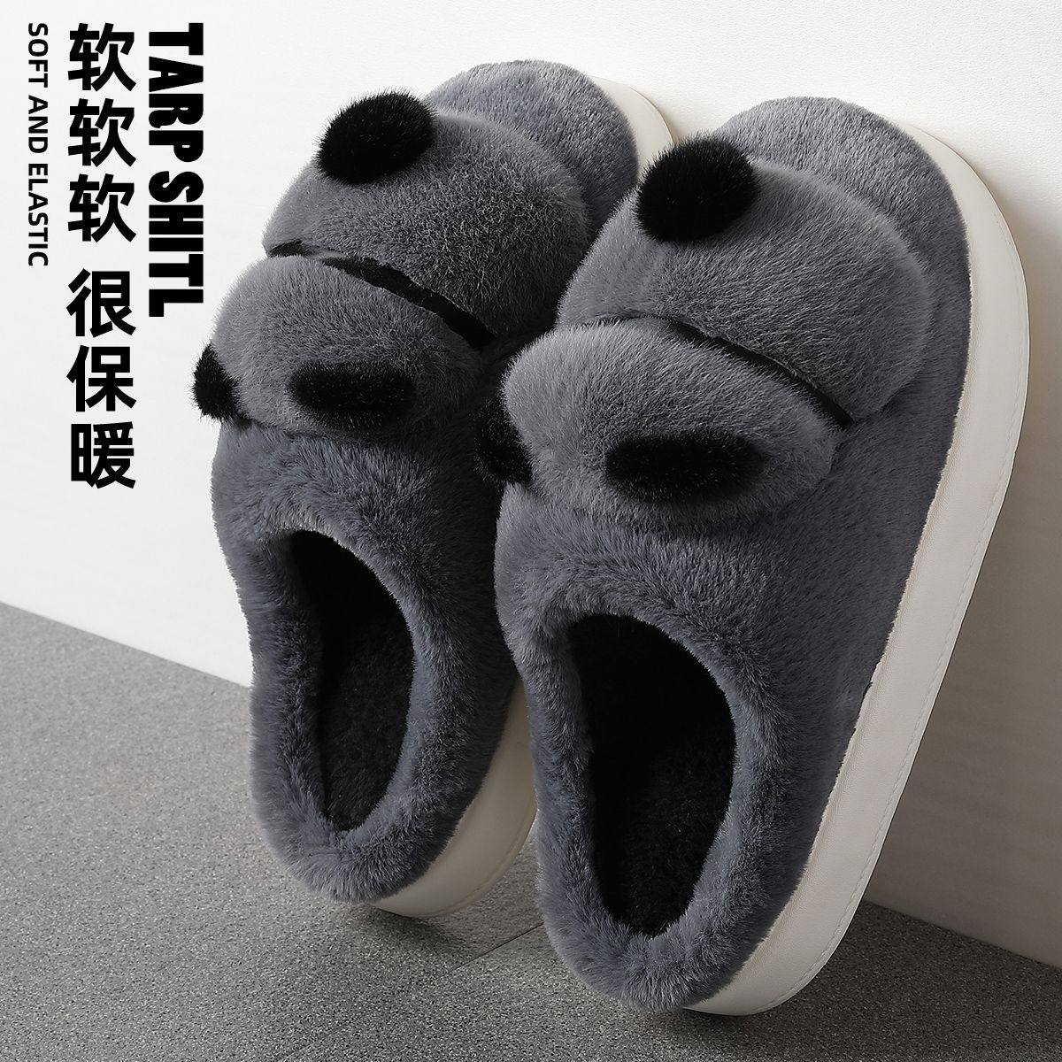 大嘴猴棉拖鞋冬男士新款加厚保暖柔软舒适毛毛全包跟厚底外穿棉鞋