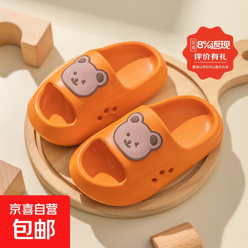 儿童凉拖鞋女童夏季可爱小女孩洗澡公主室内亲子防滑男女童凉拖鞋 橙色-小熊 36-37 (225mm)