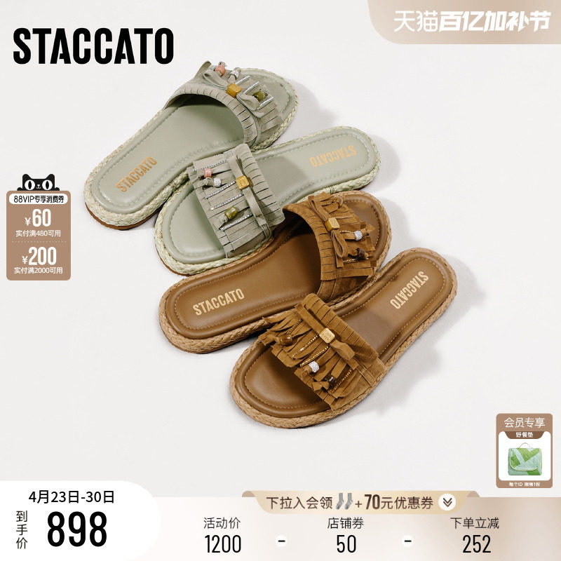 思加图2026夏季新款复古休闲拖鞋平底鞋凉拖鞋外穿女凉鞋ELP08BT6