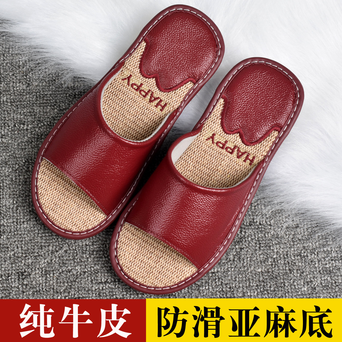 夏季真皮牛皮居家拖鞋防滑防臭透气亚麻底男女情侣居家凉拖鞋