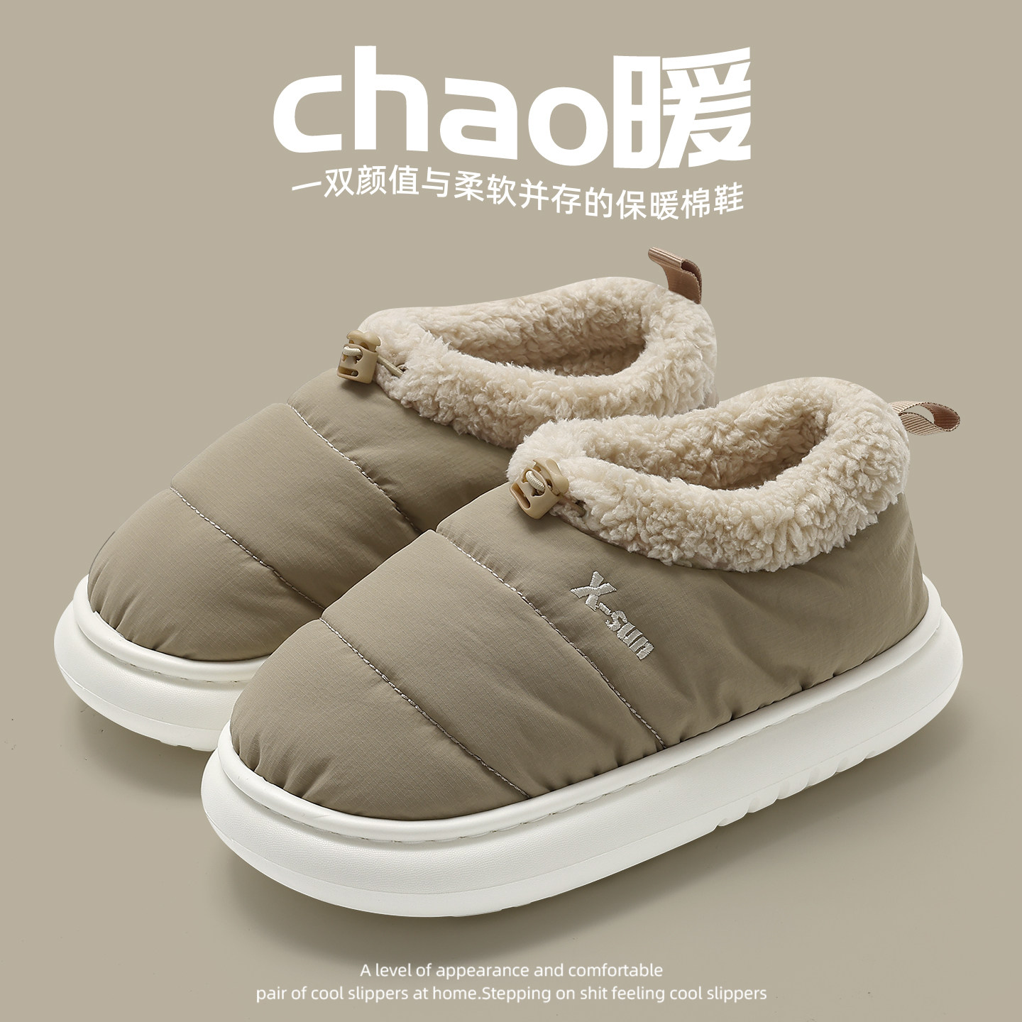 棉拖鞋包跟家居拖鞋冬季女防水羽绒布加厚鞋防滑保暖棉鞋男鞋