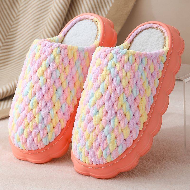 4.5CM加厚加绒情侣冬季厚底防滑毛绒包头美拉德色系居家棉拖鞋户