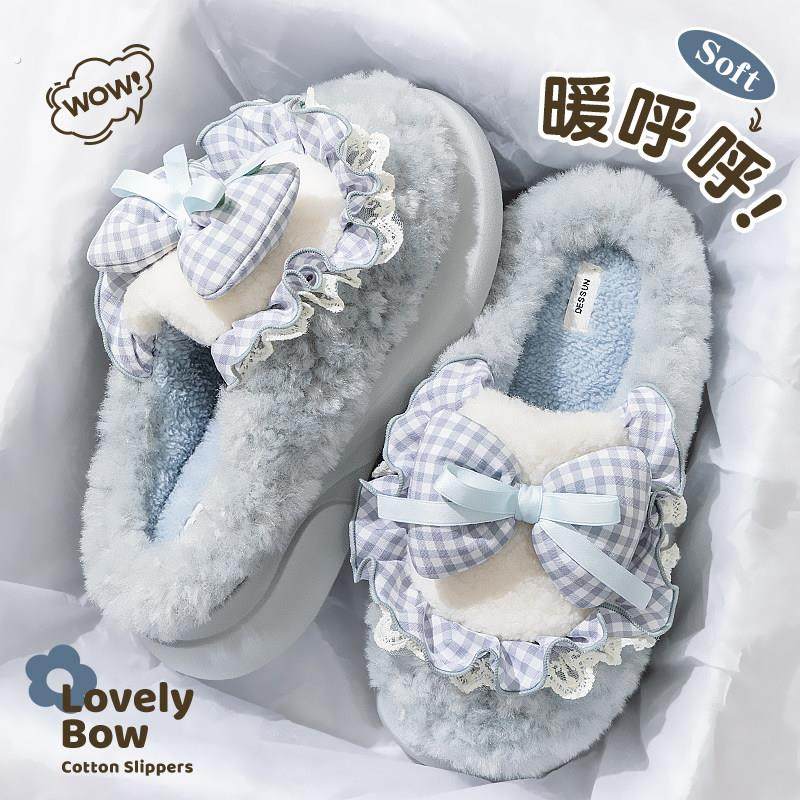 蝴蝶结棉拖鞋女款秋冬季2025新款室内家加绒加厚保暖厚底月子拖鞋