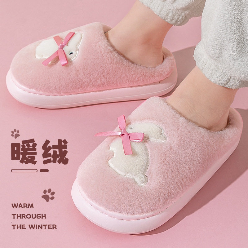 秋冬时尚蝴蝶结金丝绒家居情侣棉拖鞋室内地板牛筋底家用防滑拖鞋