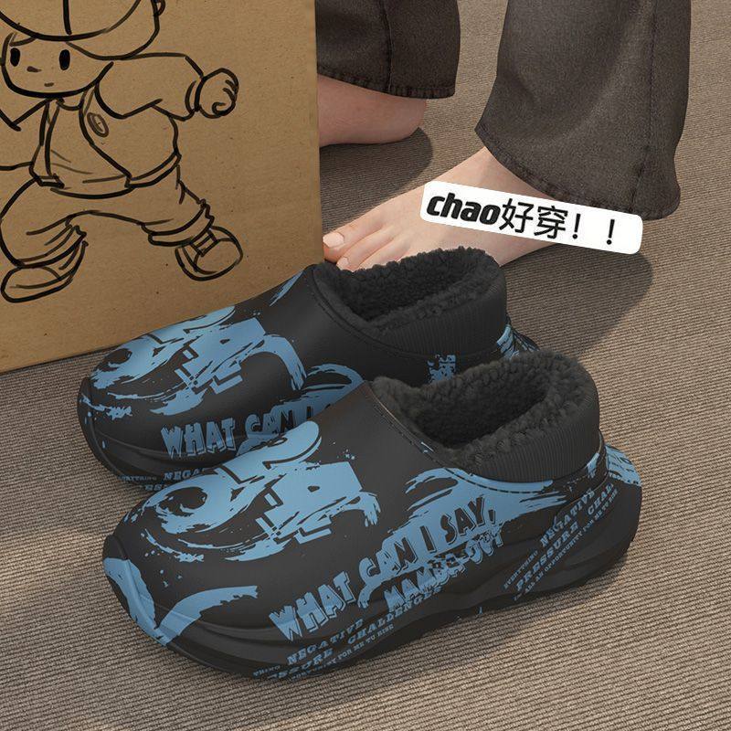 防水棉拖鞋男款2025新款家居防滑毛绒保暖外穿厚底eva包跟棉鞋女