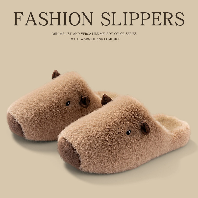 棉拖鞋女士秋冬季2025新款室内居家卡皮巴拉保暖毛毛绒情侣棉拖男