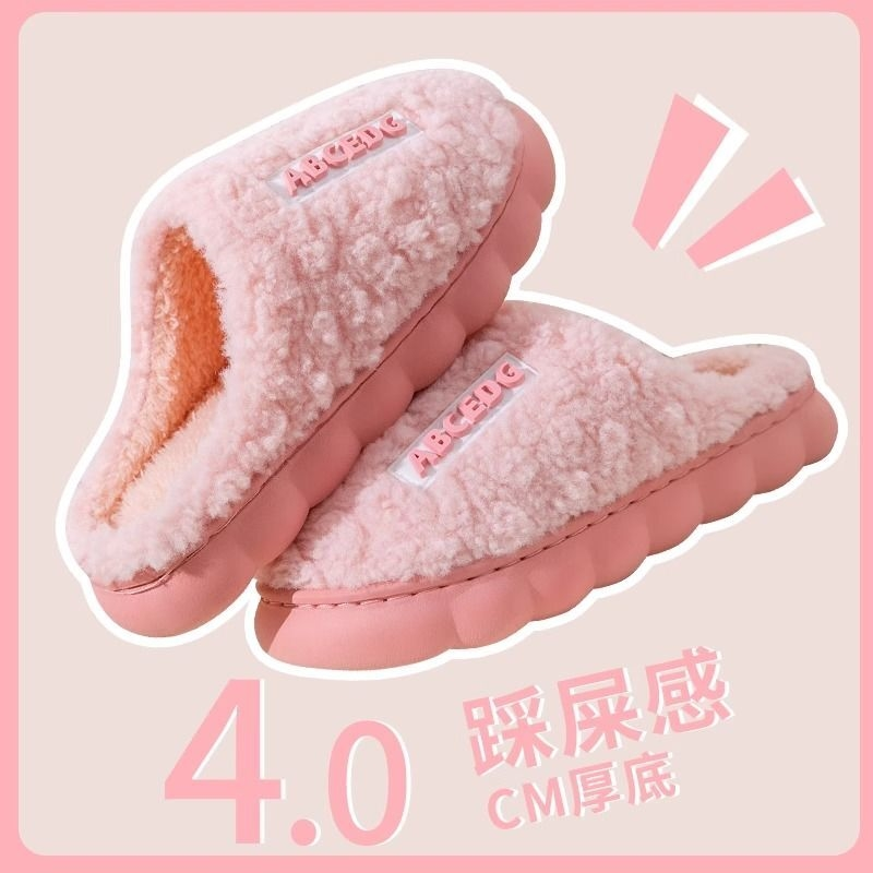 朴西棉拖鞋女士秋冬季保暖防滑室内居家用加厚底不沾毛情侣棉鞋男