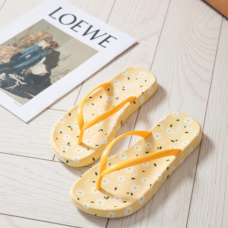 网红花朵人字拖女夏天ins风可爱防滑浴室夹脚拖鞋防水度假沙滩鞋