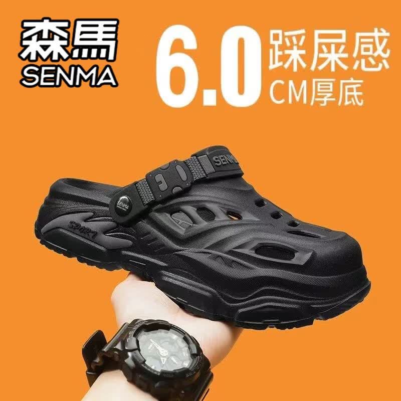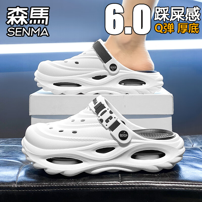 森馬洞洞鞋男款夏季2026新款外穿厚底防滑踩屎感包头拖鞋户外沙滩凉鞋 白黑 【基础款】 41 (40-41同码)